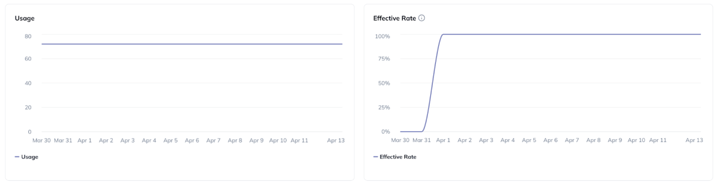 For example, here we can clearly see the anomaly was caused by a change in usage, while the rate remained stable:
