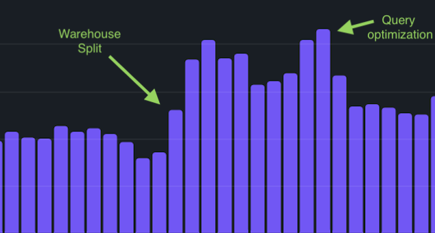 Snowflake advises against increasing that limit. At first, we scaled up the warehouse a couple of times, to improve the speed of our queries - but that quickly became insufficient. It was time to re-evaluate our Snowflake architecture.